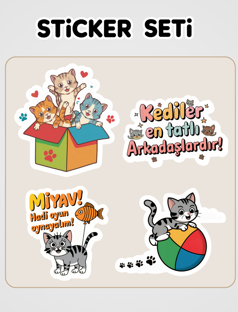 İlk Okuma - Kediler temalı 4 farklı adet 6 cm boyutlarında GUGUK marka sticker seti! ​