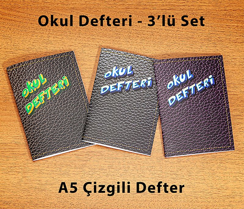 Bookinzi Okul Defteri - 60gr. A5 Tel Dikiş - Çizgili Defter - Deri Desen (3'lü Set)