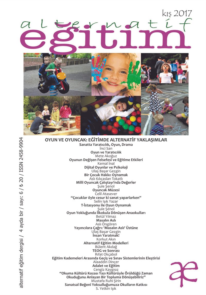 Alternatif Eğitim Dergisi’nin bu sayısı oyun ve oyuncağı çok boyutlu biçimde ele alıyor. Yetişkinlere ve eğitimcilere sınav ve başarıya odaklanmış bir çocuklukta oyun ve oyuncağı yeniden hatırlatmayı hedefliyor.