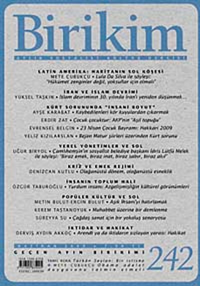 ÖMER LAÇİNER “Kâğıt parçası” ve TSK: Kabustan uyanışa AHMET İNSEL CHP'nin nöbetçi milletvekillerinin 13 dakikalık demokratlığı FİKRET DOĞAN Avrupa solu çökerken HAYATİ GEÇİCİ İran:Devrim tarihinin ‘en sağlıklı’ seçimi! Toplumun cinnet hali MELEK GÖREGENLİ Cinnet - “Başkalarının” hikâyesi mi? HATİCE MERYEM Okumuş çocuklar ve anneleri EVRENSEL BELGİN Süpermarkette vahşet: 1 ölü FUNDA ŞENOL CANTEK - LEVENT CANTEK Üçüncü sayfa canavarları,medya ve izleyici manzaraları:Olağan tutarsızlıklar EMRAH SERBES Şiddetli hatıralar ve bazı teferruatlar DERVİŞ AYDIN AKKOÇ Dizginsiz şiddet üzerine kötümser bir deneme Sağlık ve neo-liberalizm ŞÜKRÜ HATUN Sağlık hizmetlerinde güncel sorunlar ve tartışmalar MOHSEN SHAHMANESH Neo-liberal küreselleşme ve sağlık: Modern bir trajedi OSMAN ELBEK Yoksulluk ve sağlık Edebiyat ve toplum TANIL BORA Ayfer Tunç ile söyleşi:“Ne olursa dibe vurduk diyeceğiz?” BÜLENT YILDIZ Bilge Karasu’nun Gece romanı üzerine eleştirel bir deneme:Gece’de kaybolan “ben” İLKER ÖZDEMİR Elif Şafak’ın Aşk’ı: Hayata karşı bir aşk Aile, mahremiyet ELiFHAN KÖSE Mahremimizde yeni haller:Beden, cinsiyet, mülkiyet NiSA GÖKSEL Toplumsal cinsiyet ilişkileri:Neo-liberalizm ve aile söylemleri İslami hareket ÖZKAN ŞAHİN AKP ve radikal islamcıların hoşnutsuzluğu:Radikal islam’ın ikinci raundu Ortadoğu'da yeni dönem ÖZGE ÖZKOÇ Netanyahu konuştu; gökyüzünün altında değişen bir şey yine yok! Irkçılık ve milliyetçilik EMEL UZUN Irkçı siteler: ikonografi ve ideoloji