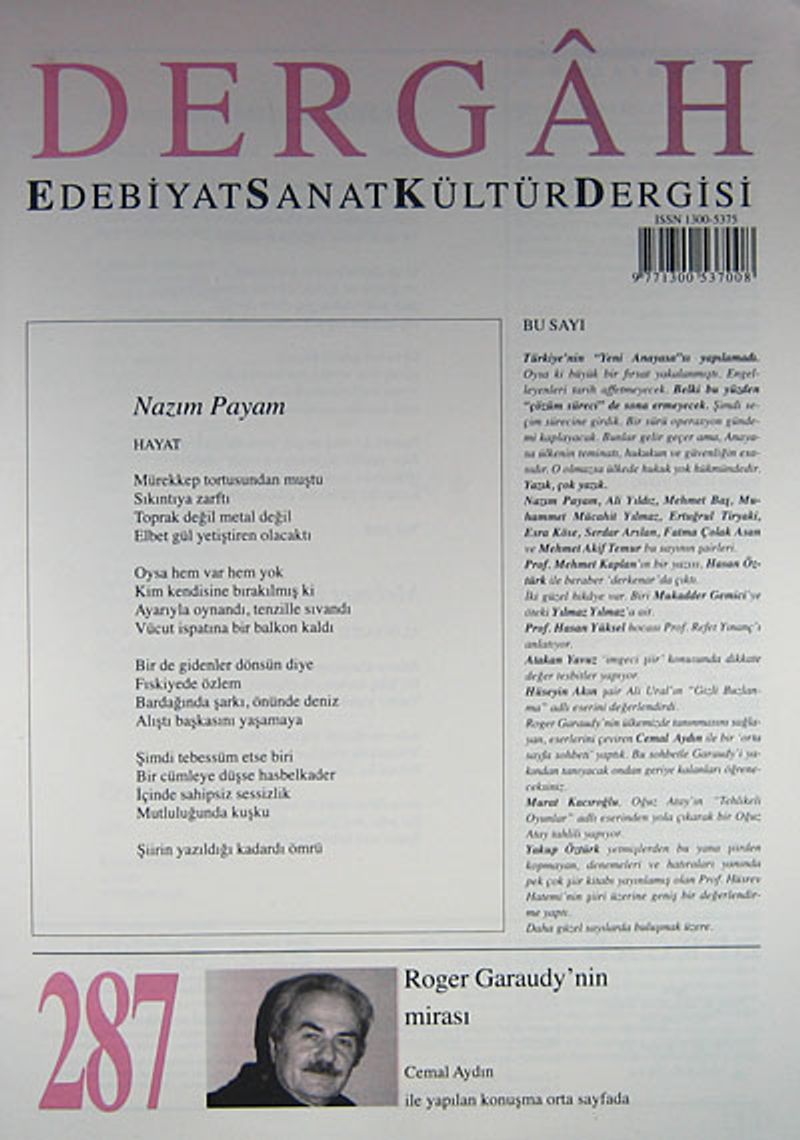 Dergah Edebiyat Sanat Kültür Dergisi Sayı:287 Ocak 2014