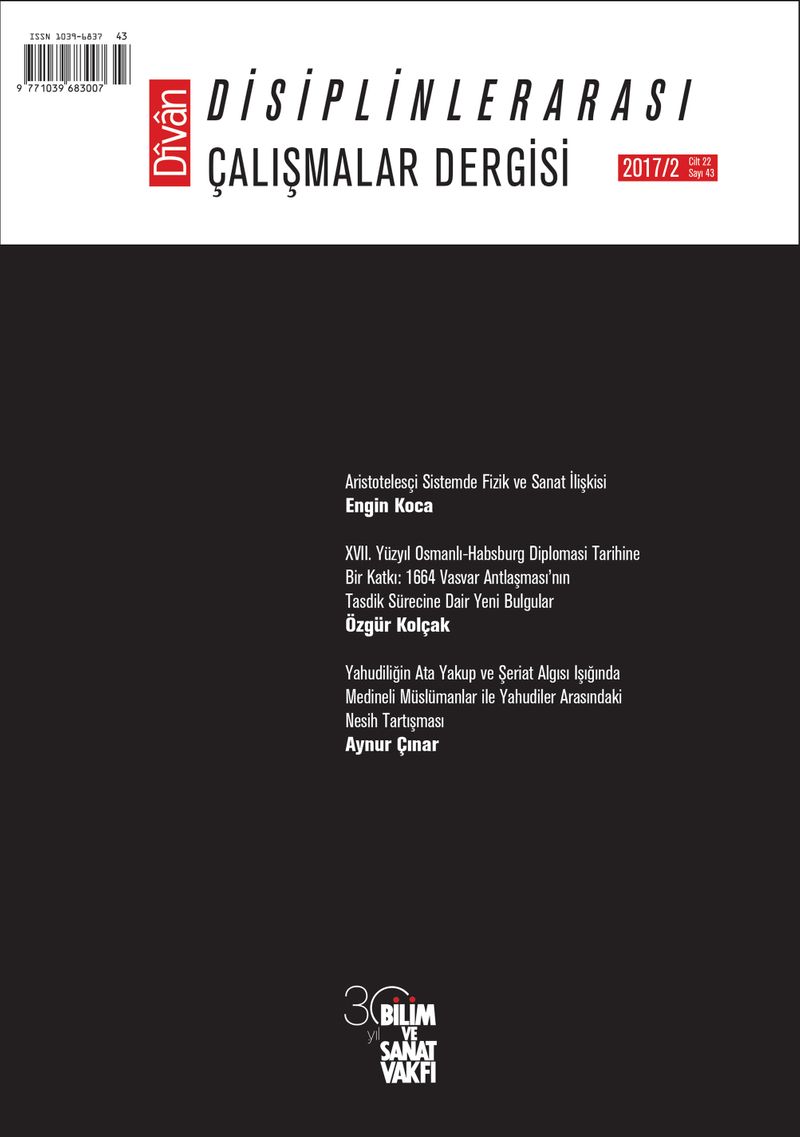 Bu sayımız Engin Koca’nın “Aristotelesçi Sistemde Fizik ve Sanat İlişkisi” başlıklı makalesiyle başlıyor. Aristotelesçi sistemdeki üç temel bilgi sınıflandırması olan üretici, pratik ve teorik bilginin birbirinden bağımsız olarak ele alınmasını eleştiren Koca, bu bilgi türler arasındaki ilişkiyi teorik bilgi ile üretici bilgi arasındaki ilişkinin kurallılığını tespit ederek göstermeye çalışıyor. Bu ise öncelikle fizik biliminin konusu açıkça belirlenmesi ve burdan hareketle sanatların fizik ile ilişkisinin tespitiyle mümkün. Koca’ya göre söz konusu ilişkinin belirlenmesi ilk olarak modern bilimler sınıflandırmasının Aristoteles’e olan borcunu göstermiş olacak ve mühendislik bilimleriyle temel bilimler arasındaki ilişkinin kavranmasına yönelik bir katkı sunacak.