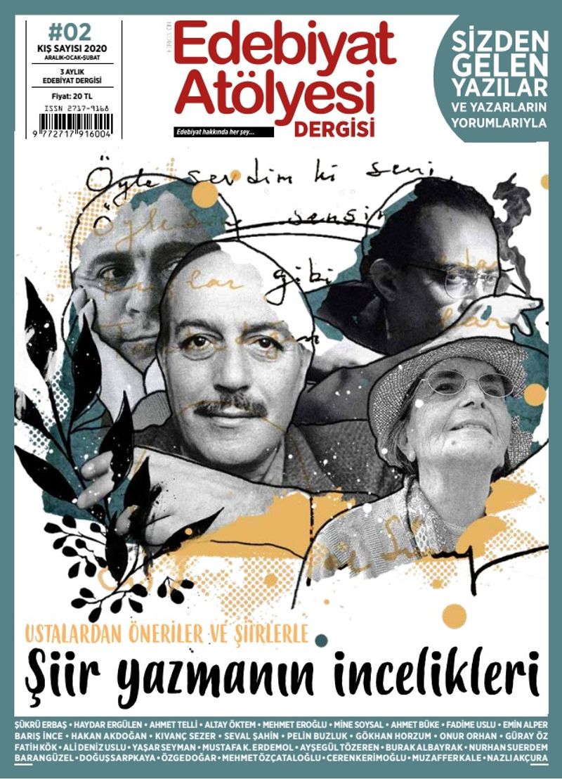 Üç aylık Edebiyat Atölyesi Dergisi 2. Sayısıyla okurlarıyla buluşuyor. Sayfalarının yarısını yeni yazarların yazılarına açıp onları yayın kurulundaki yazarlarla değerlendiren Edebiyat Atölyesi Dergisi’nin kış sayısında dosya konusu şiir yazmanın incelikleri. Derginin Yayın Yönetmenliğini Barış İnce yapıyor.