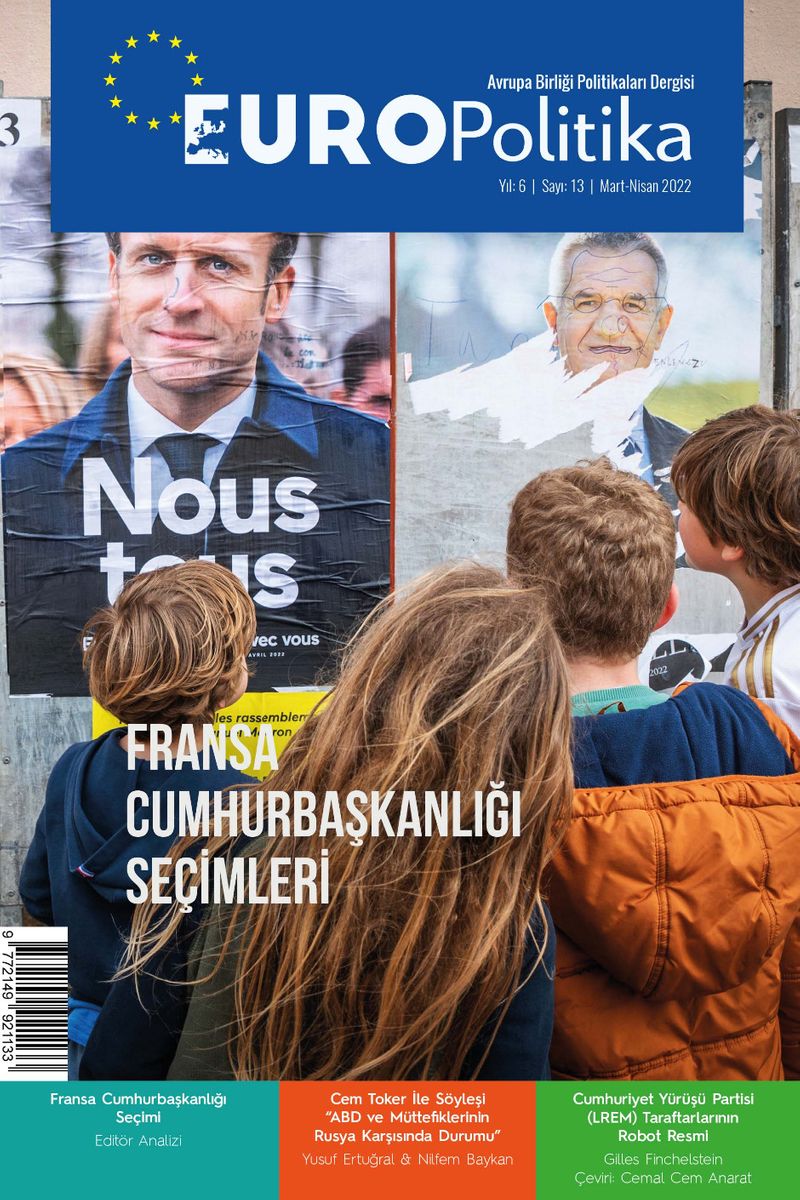 aday ikinci turda yarışacak. Kamuoyu yoklamalarında ibre Macron’undan yana gözüküyor. Macron’un seçimin ilk turunda yüzde 25-30 aralığında oy oranı ile ikinci tura çıkacağı tahmin ediliyor. İkinci turda ise muhafazakâr Valerie Pecresse, aşırı sağdan Marine Le Pen veya Eric Zemmour Macron’un olası rakipleri olarak görülüyor. 13. sayımızın diğer içerikleri içerisinde bir önceki dosya konumuz olan Ukrayna ve Rusya savaşını ve gelişmelerini yakın takip etmeye çalışarak bu sayımızda ABD dış politika uzmanı siyasetçi ve ekonomist Cem Toker ‘in değerli görüşlerinin yer aldığı söyleşine yer verdik.