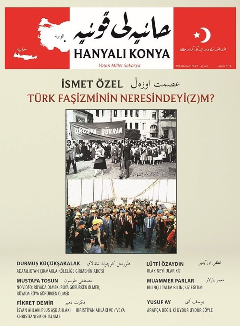 İstiklâl Marşı Derneği Konya Şubesinin neşrettiği «HANYALI KONYA» mecmuasının beşinci sayısı İsmet Özel’in yazı başlığı olan «Türk Faşizminin Neresindeyi(z)m ? » manşetiyle çıktı.