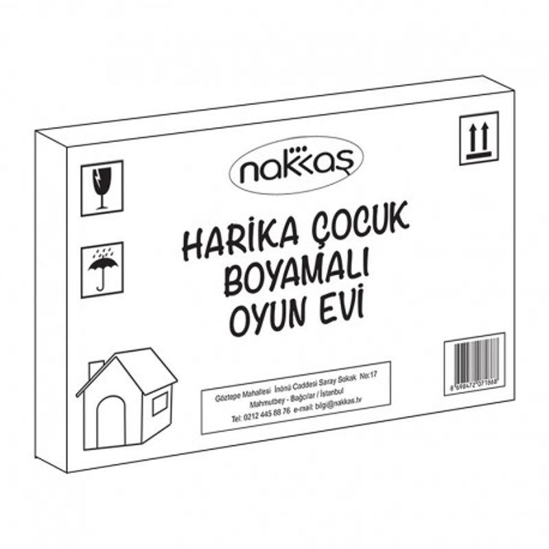 Kaliteli, beyaz mukavva kartondan üretilen bu ev, parçalardan oluşuyor. Çocuklar parçaları birbirine takıp kolayca birleştirebiliyor.
