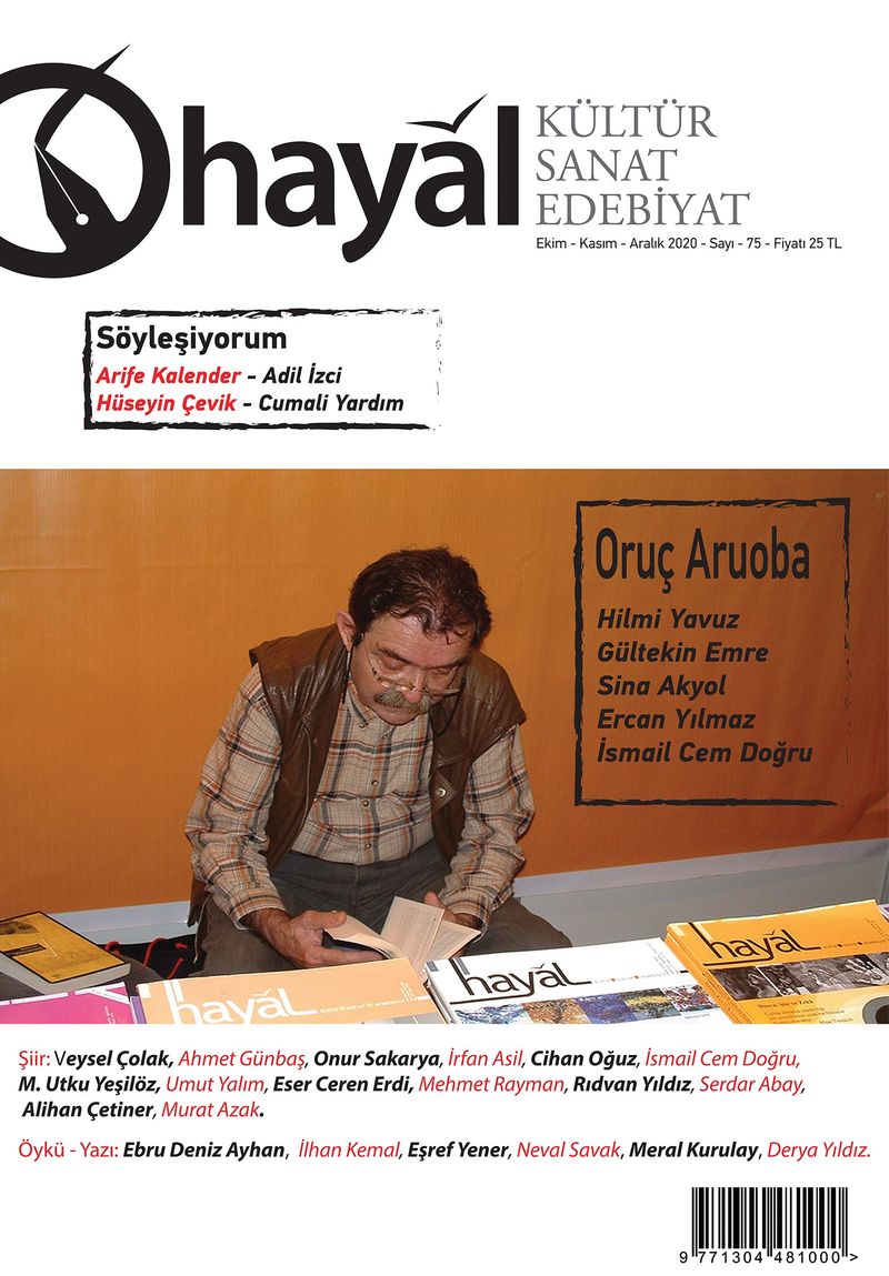 Bu sayıda 14 Temmuz 2020’de aramızdan ayrılan sevgili şair ve feylesof Oruç Aruoba’yı, onun hem edebiyatımıza hem de yaşantımıza kattıklarını dosyamızda paylaşmak istedik. Birçok kıymetli ismin katkılarıyla hazırlanan dosyamızın yanı sıra iki söyleşimizle birlikte kıymetli şair ve öykücülerimiz de bu sayıda eserleriyle dergimize katkıda bulundular.
