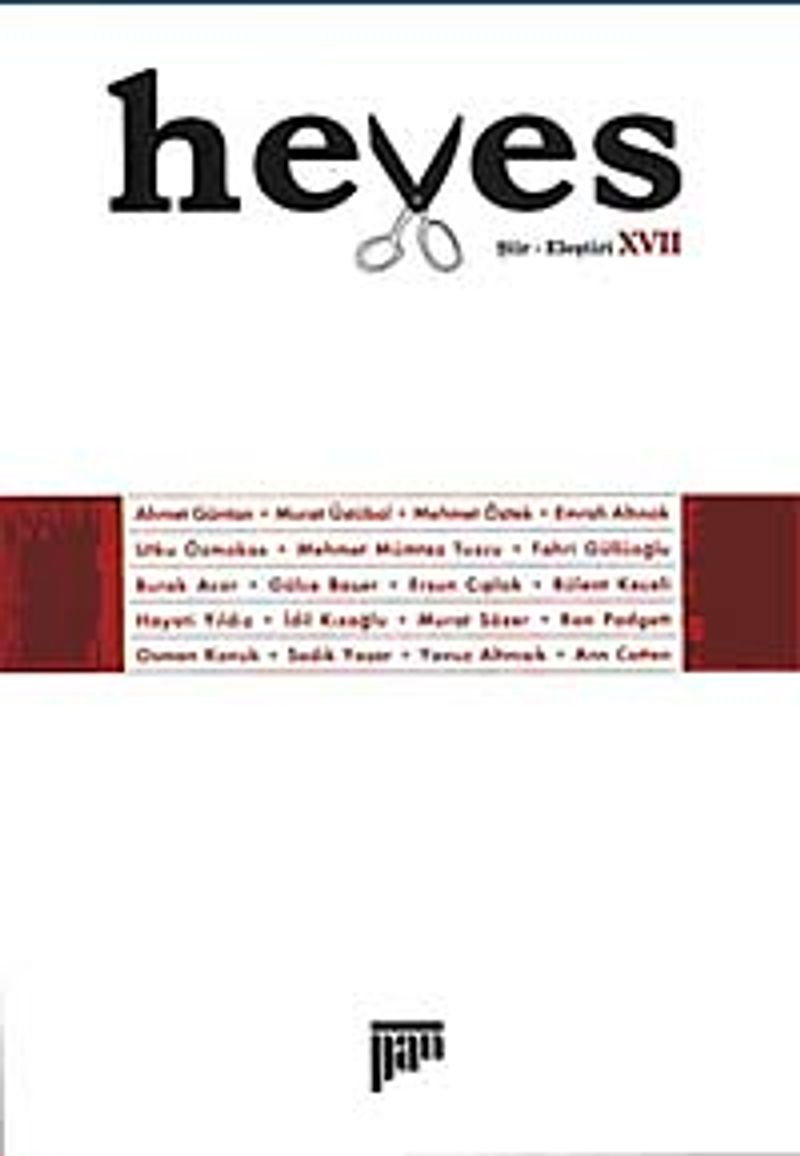Heves Şiir-Eleştiri dergisinin 17. sayısı yine dopdolu. Osman Konuk'un Küllük serisi bu sayıda İstanbul, İzmir, Adana ve Üsküp değinileriyle devam ediyor. "Edebiyat yapmadan" edebi bir metin yazılabilir mi? Bu sorunun cevabı Küllük'te saklı. Ersun Çıplak, "İzzz-et Olmak" adlı yazısında İzzet Yasar şiirini, şairin Dil Oyunları adlı kitabından hareketle masaya yatırıyor. Utku Özmakas, Osman Konuk'un Tehlikeli Belki adlı kitabını çözümledi; "süreksizlik" kavramı etrafında şekillenen yazı Osman Konuk şiiriyle ilgili bugüne kadar yazılan en isabetli yazılardan biri... Bu sayının son yazısı Avusturyalı genç şair Ann Cotten'ın avangardın geleneği üzerine notları.