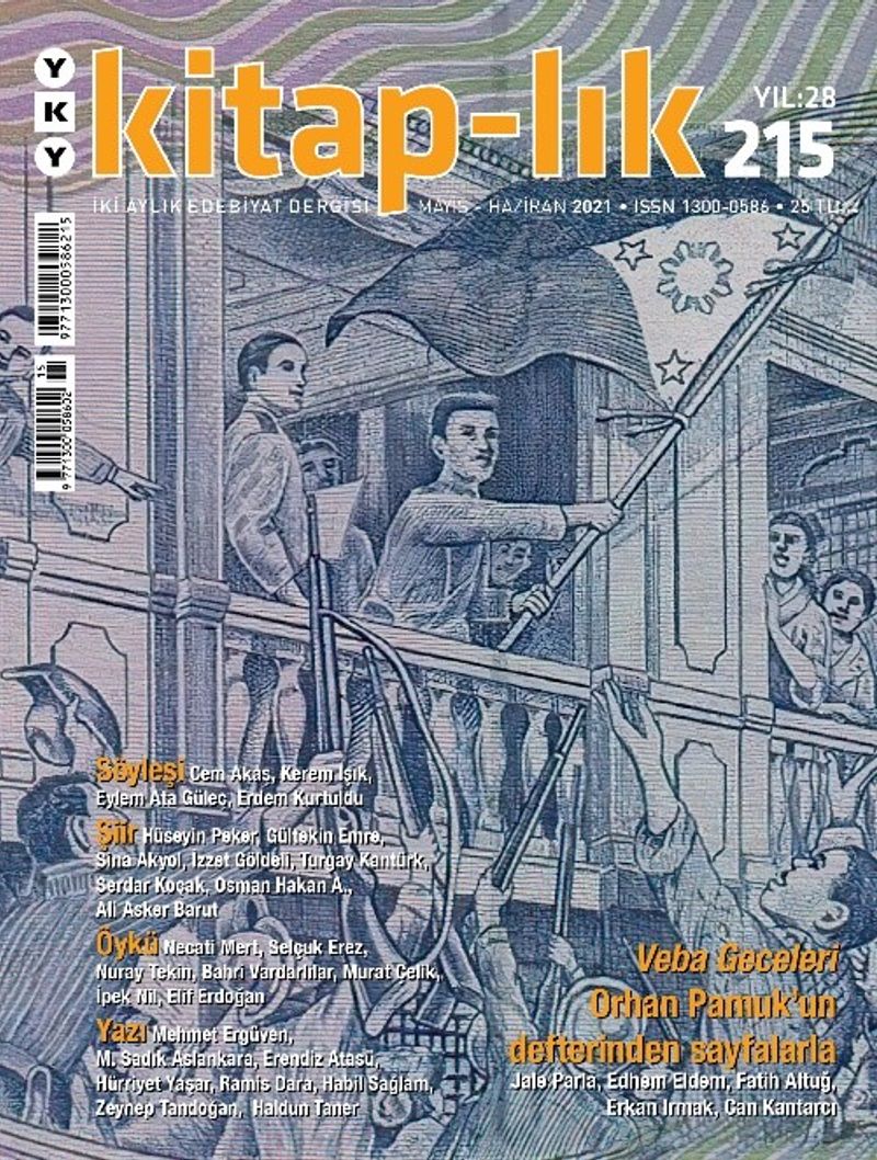Yapı Kredi Yayınları tarafından yayımlanmakta olan kitap-lık dergisinin 215. sayısının dosya konusu Orhan Pamuk’un yeni romanı Veba Geceleri. Romanın türünü, özelliklerini, yapısını, konularını Jale Parla, Edhem Eldem, Fatih Altuğ, Erkan Irmak, Can Kantarcı inceliyor. Dosyada ayrıca Orhan Pamuk’un romanını yazarken tuttuğu resimli günlük sayfaları var.