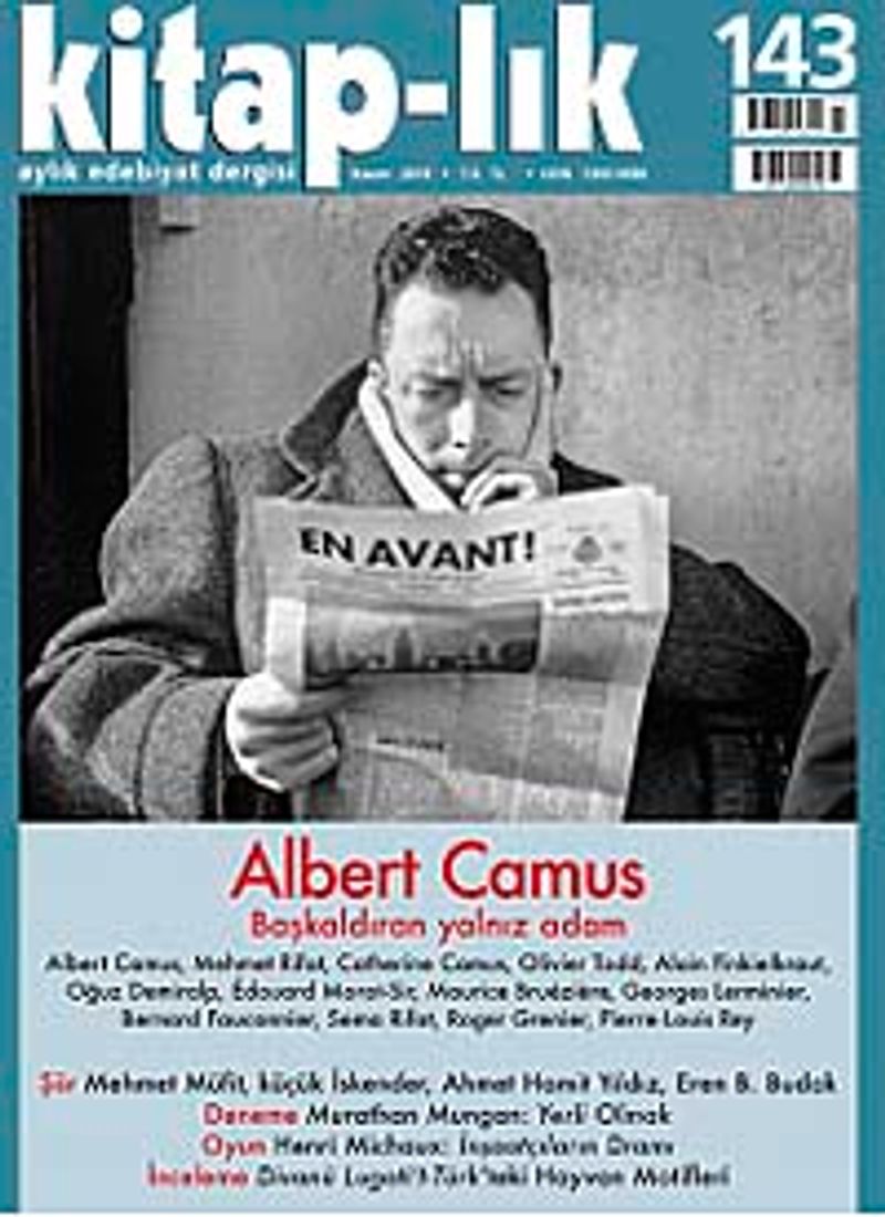 kitap-lık dergisinin yeni sayısında kapsamlı bir Albert Camus dosyası var: Türkçeye pek çok kitabı çevrilmiş 20. yüzyılın bu büyük yazarı ölümünün ellinci yılında bütün yönleriyle işleniyor. Camus’nün dünya görüşü, roman ve denemelerinde irdelediği temel kavramlar yazıların ana eksenini oluşturuyor. Mehmet Rifat, Catherine Camus, Oğuz Demiralp, Édouard Morot-Sir, Maurice Bruézière, Georges Lerminier, Bernard Fauconnier, Sema Rifat, Roger Grenier, Pierre-Louis Rey yazılarıyla, Olivier Todd ile Alain Finkielkraut söyleşileriyle Camus’nün edebiyat ve düşünce dünyasını, yaşadığı dönemin düşünsel, sosyal, siyasal ve yazınsal sorunlarıyla ilişkilerini ortaya koyuyorlar.