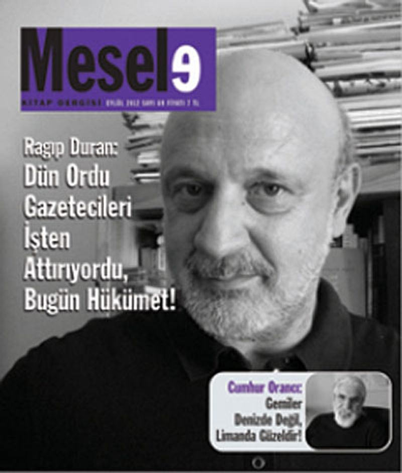 Mesele Kitap Dergisi'nin Eylül 2012 tarihli 69. sayısının kapak röportajı, "Dün Ordu Gazetecileri İşten Attırıyordu, Bugün Hükümet" başlığıyla, Suriye gündemi vesilesiyle medyanin halini eleştiren Ragıp Duran'la yapıldı. Ayrıca, Ayrıntı'dan yeni romanı çıkan Cumhur Orancı'yla uzun bir röportaj, Barış Yıldırım'ın Orhan Pamuk ve Masumiyet Müzesi üzerine yazısı, 78'in bilinen isimlerinden Gökhan Harmandalıoğlu'yla çok uzun yıllar sonra yapılan ilk röportaj, Suriye konusunda bir analiz ile medyadaki yoksulluğu araştıran ve sonuçlarını irdeleyen bir söyleşi yer alıyor...