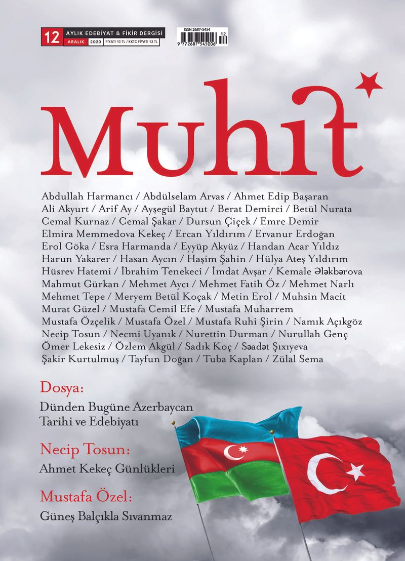 Şair ve yazar İbrahim Tenekeci yönetiminde, ocak ayında yayın hayatına başlayan Muhit, her kuşaktan pek çok kıymetli ismin eserleriyle katkı sunduğu Aralık sayısıyla yürüyüşüne devam ediyor. Geçtiğimiz ay İbrahim Kalın söyleşisiyle çıkan dergi, bu ay Azerbaycan Edebiyatı ve Tarihi dosyası ile okuyucuyla buluşuyor.
