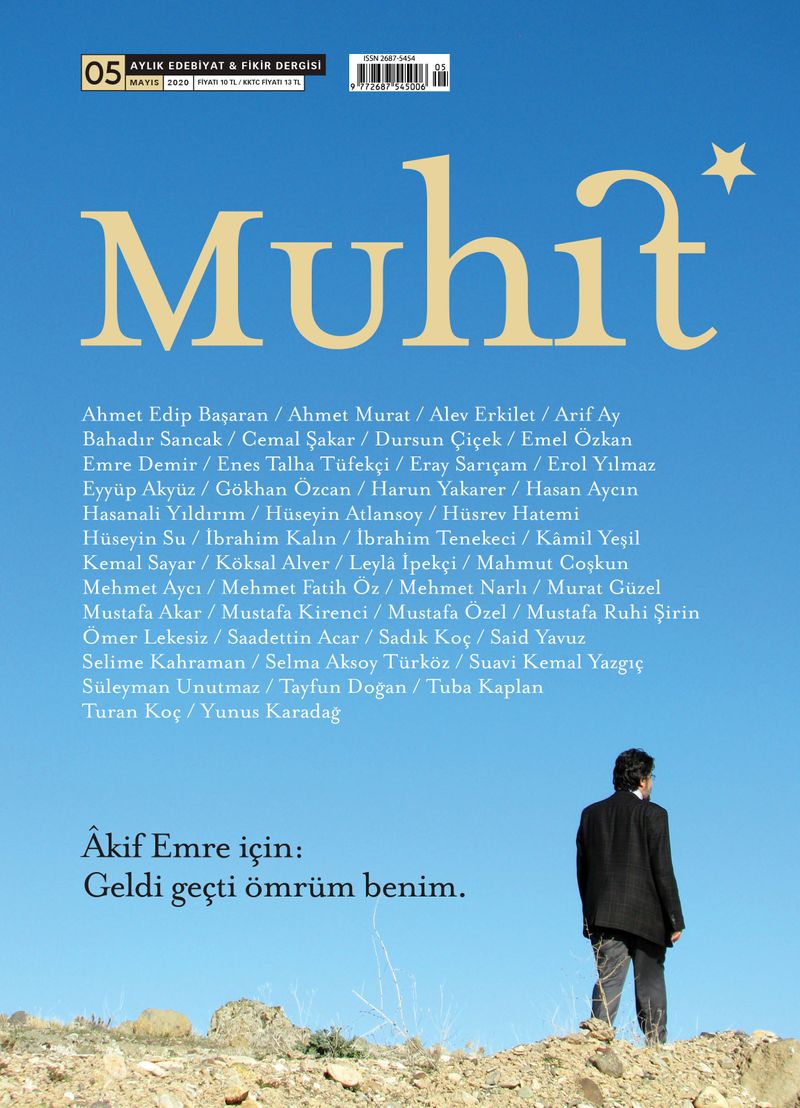 Geçen ay “Vefa Özel Sayısı”yla okuyucu karşısına çıkan Muhit, bu ay Mayıs 2017’de aramızdan ayrılan Âkif Emre’yi sayfalarına taşıyarak vefa bahsine devam ediyor. Dosya, Ömer Lekesiz’in “Âkif Emre: Mühürlenmiş Zamanda Zamansız Bir Yolcu” başlıklı yazısıyla açılıyor: “Gazetecilik mesleğinde Âkif Emre’yi diğer meslektaşlarından ayıran en önemli husus, onun münevver bir müminin sorumluluğuna sahip olmasıdır.” Alev Erkilet, Âkif Emre’nin yazılarından hareketle göçmen meselesine bakışına değiniyor: “Âkif Emre’ye göre muhacir ve muhaceret gelinen yerin bir İslam yurdu olmasıyla alakalıdır.” Mustafa Kirenci, “Âkif Emre, derinliğini ve içindeki ateşin hararetini daima koruyarak söylemesi gerekenleri söyledi” diyor. Cemal Şakar, Âkif Emre’nin şahsiyetinden hareketle şu önemli tespitte bulunuyor: “İnsanın kendi yolunu açması, sorularının peşinde koşması anlamına gelir.” Dursun Çiçek, Âkif Emre ile başlayan ve devam eden yolculuğunu anlatıyor: “Yol, yoldaş ve yolculuk, asli olanı, hakikati unutmamak içindir.” Köksal Alver “Yürürken”, Hüseyin Su “Âkif Emre’de İslamcılık Düşüncesi” başlıklı yazılarıyla Âkif Emre dosyasına katkı sunan isimler. Saadettin Acar’ın 2003 yılında Âkif Emre ile gerçekleştirdiği ve ilk kez Muhit’te yayınlanan bir de söyleşi yer alıyor.