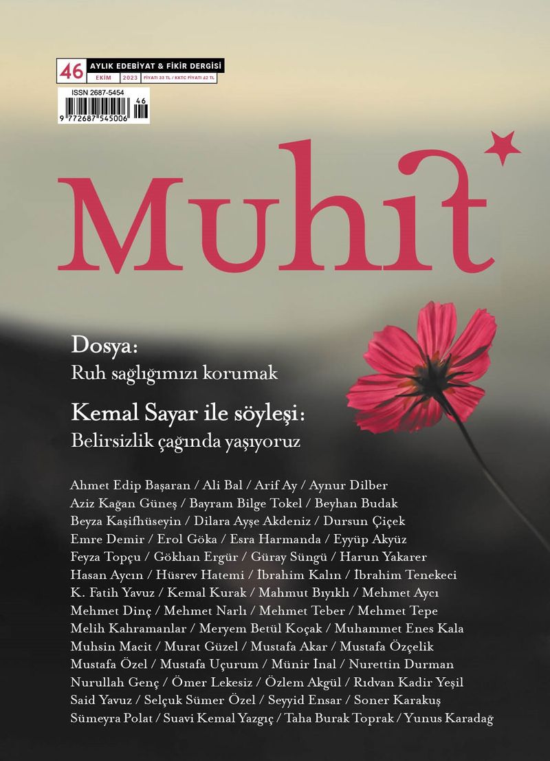 Şair ve yazar İbrahim Tenekeci yönetiminde okurla buluşan Muhit, yürüyüşüne kaldığı yerden devam ediyor. Eylül sayısında Hüsrev Hatemi ve Bayram Bilge Tokel’i kapağa taşıyan dergi, Ekim sayısında “Ruh Sağlığımızı Korumak” başlıklı psikoloji dosyasıyla okuyucularını selamlıyor.