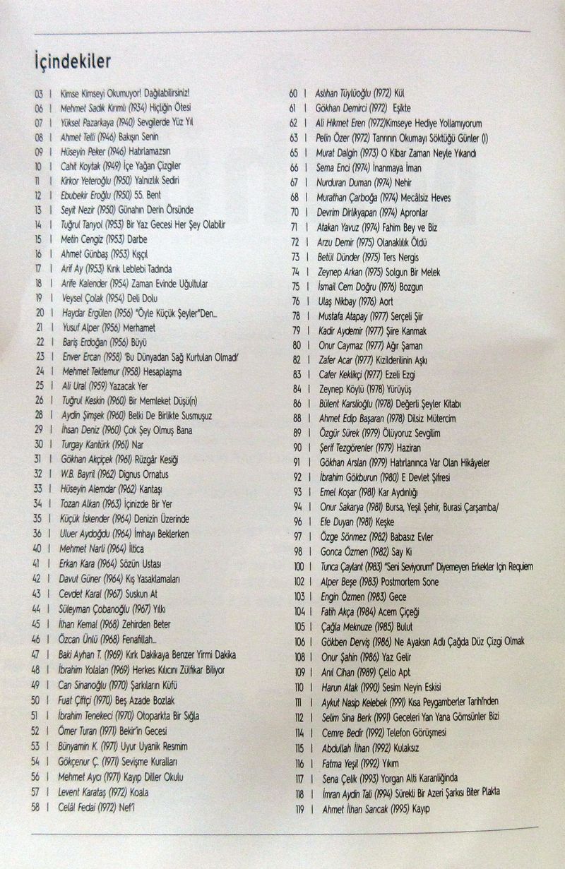 “Kimse kimseyi okumuyor! Dağılabilirsiniz…” Başlığı ile 70.sayısına ulaşan derginin bu sayısında 2016 Şiir Seçkisi Şair Dağın Doruğunda yer alıyor. Mustafa Fırat tarafından hazır edilen seçkide şiir ve edebiyat dergilerinden 2016 yılı içinde ön plana çıkmış şiirlerin seçimi yer alıyor. Derginiz başında 2016 yılının genel görünümü üzerine de kısa bir değini yer alıyor…