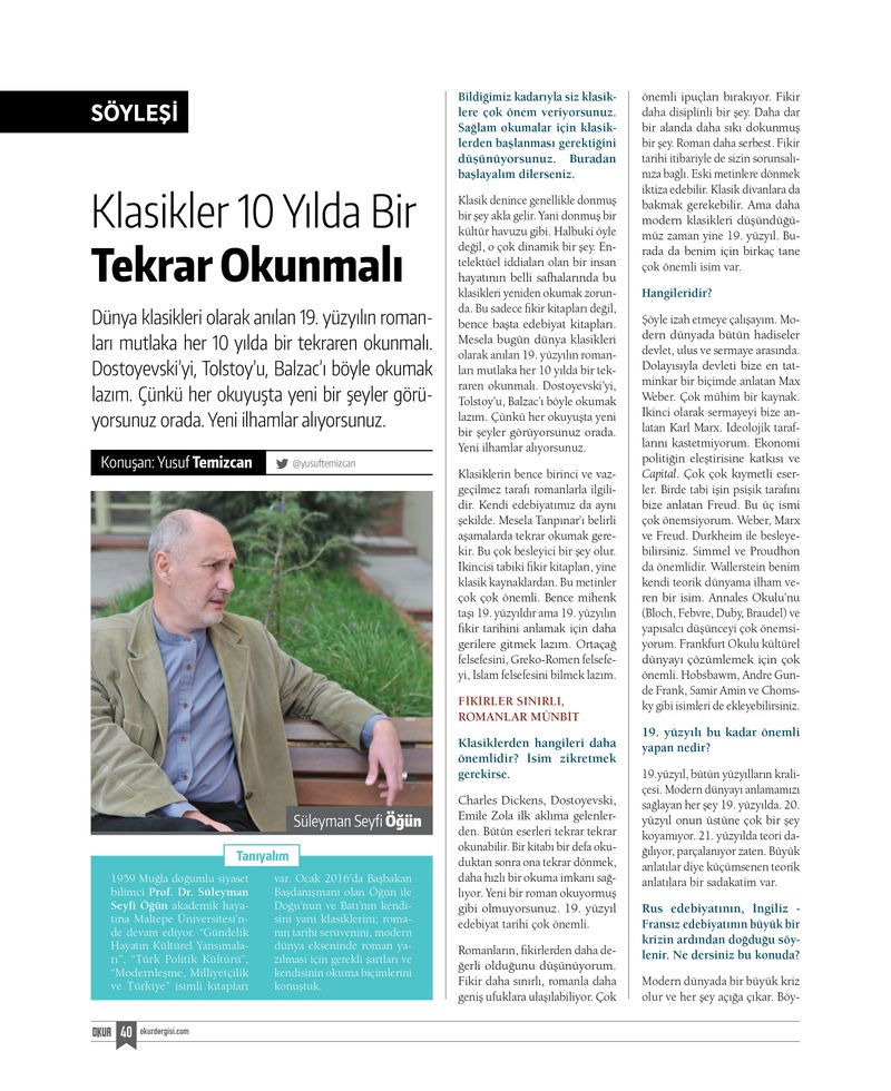 Orta sayfa söyleşimizi Süleyman Seyfi Öğün ile yaptık. Klasiklere dönmeyi önerdi. Ayrıca Ekrem Demirli, Fatih M. Şeker ve Bülent Ata ile yapılmış söyleşileri de keyifle okuyabilirsiniz.
