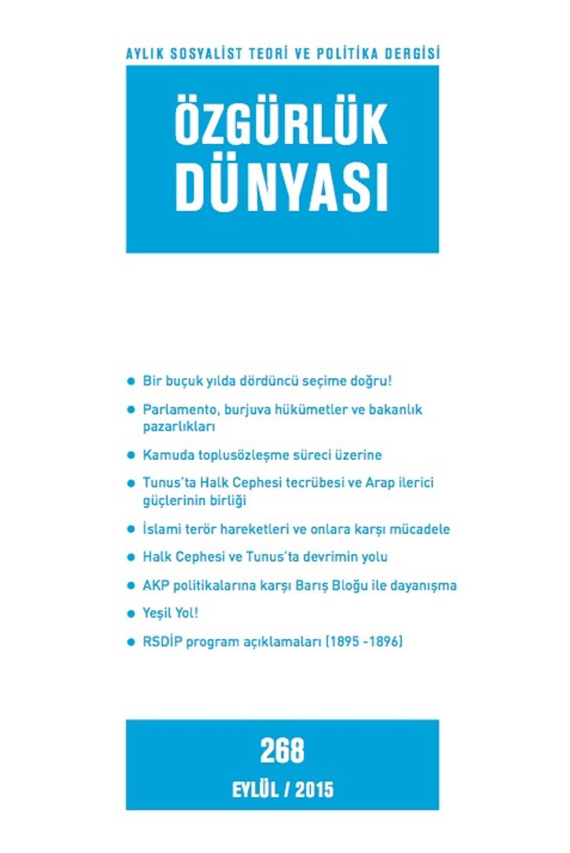 Özgürlük Dünyası / Aylık Sosyalist Teori ve Politika Dergisi / Eylül 2015 Sayı:268