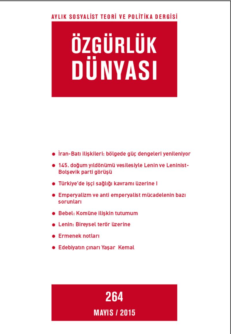 İran-Batı ilişkileri: bölgede güç dengeleri yenileniyor 145. doğum yıldönümü vesilesiyle Lenin ve Leninist-Bolşevik parti görüşü Türkiye’de işçi sağlığı kavramı üzerine I Emperyalizm ve antiemperyalist mücadelenin bazı sorunları Bebel: Komüne ilişkin tutumum Lenin: Bireysel terör üzerine  Ermenek notları Edebiyatın çınarı Yaşar  Kemal