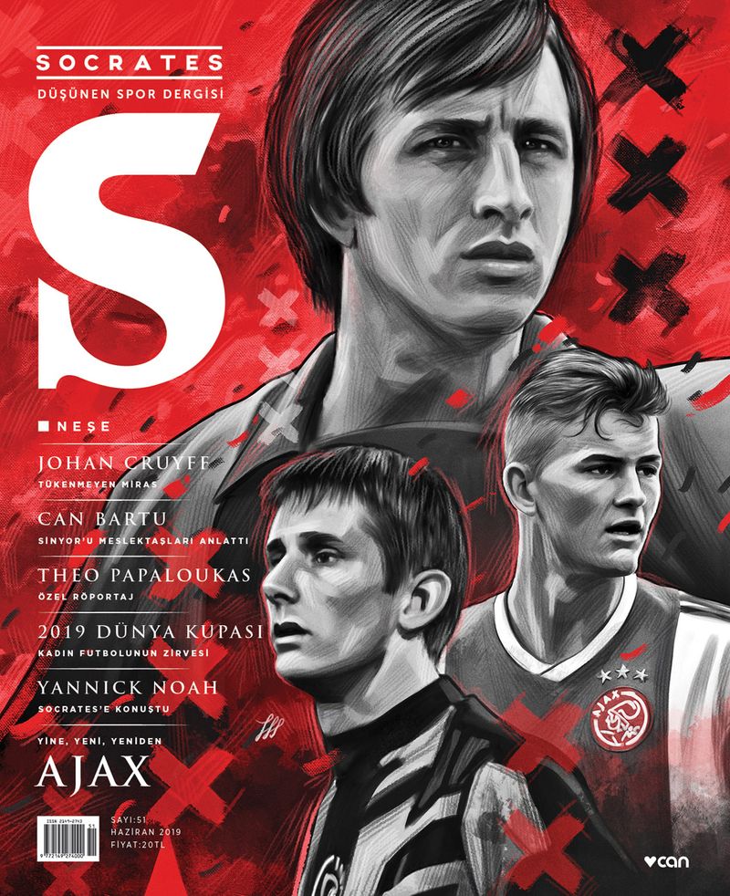 Socrates'in Haziran sayısının kapağında Ajax var. Bu yıl bir kez daha milyonlara ilham veren Hollanda kulübünü, farklı yönleriyle işledik. Kapakta, 1970'lerden itibaren dünya futbolunu etkileyen Johan Cruyff, bu seneki takımın genç kaptanı Matthijs de Ligt ve Şampiyonlar Ligi'ni kazanan Ajax'ın kalesini koruyan ve şu anda da kulüpte yöneticilik görevi üstlenen Edwin van der Sar bulunuyor.
