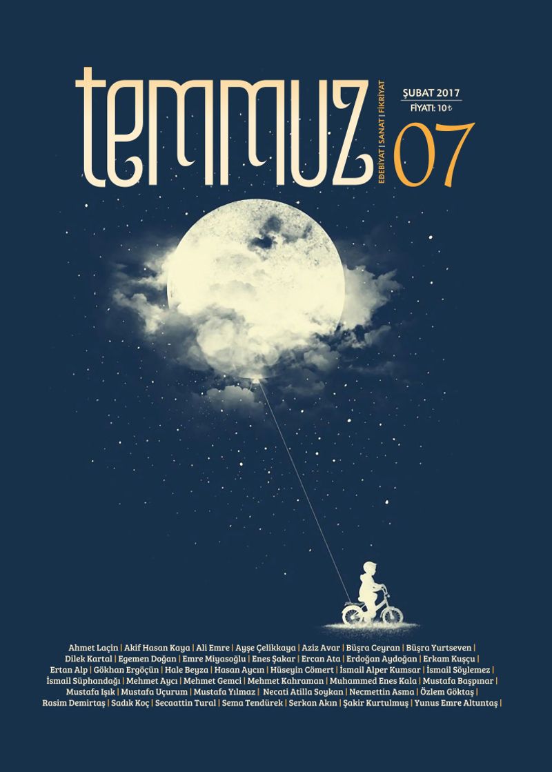 Mustafa Uçurum, Muhammed Enes Kala, Serkan Akın ve Gökhan Ergöçün’ün denemeleriyle yer aldıkları dergide, Ertan Alp mensur-şiir özelliği taşıyan bir metinle ilk kez selamlıyor okuyucuyu. Şakir Kurtulmuş, sıcak ve samimi bir dille kaleme aldığı günlüklerinden bir bölümü paylaşıyor Temmuz okuyucusuyla. Erkam Kuşçu, bu sayıdaki yazısında Amerikan sinemasındaki kahraman imgesini ve ekonomik çekişmeleri irdeliyor.