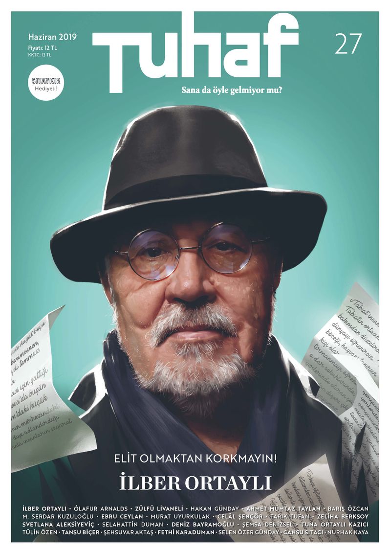 Geçtiğimiz ay Cem Yılmaz kapağı ve dosyasıyla okurunu selamlayan derginin Haziran sayısının kapağında Türkiye’nin en önemli tarihçilerinden, yazar ve akademisyen İlber Ortaylı bulunuyor. ‘Sana da öyle gelmiyor mu?’ mottosuyla çıkan derginin Ortaylı için hazırladığı dosyada ünlü tarihçiyi kızı Tuna Ortaylı Kazıcı, arkadaşları Zeliha Berksoy ve Celâl Şengör anlatırken, İlber Ortaylı’nın aile fotoğrafları, lise gazetesinde kaleme aldığı yazı gibi belgelerden oluşan arşivi de ilk kez Tuhaf Dergi’de yayınlanıyor. Dergide ayrıca, Deniz Bayramoğlu’nun İlber Ortaylı’yla gerçekleştirdiği, “Evet, Elitim ve Elitistim” başlıklı bir söyleşi de yer almakta.
