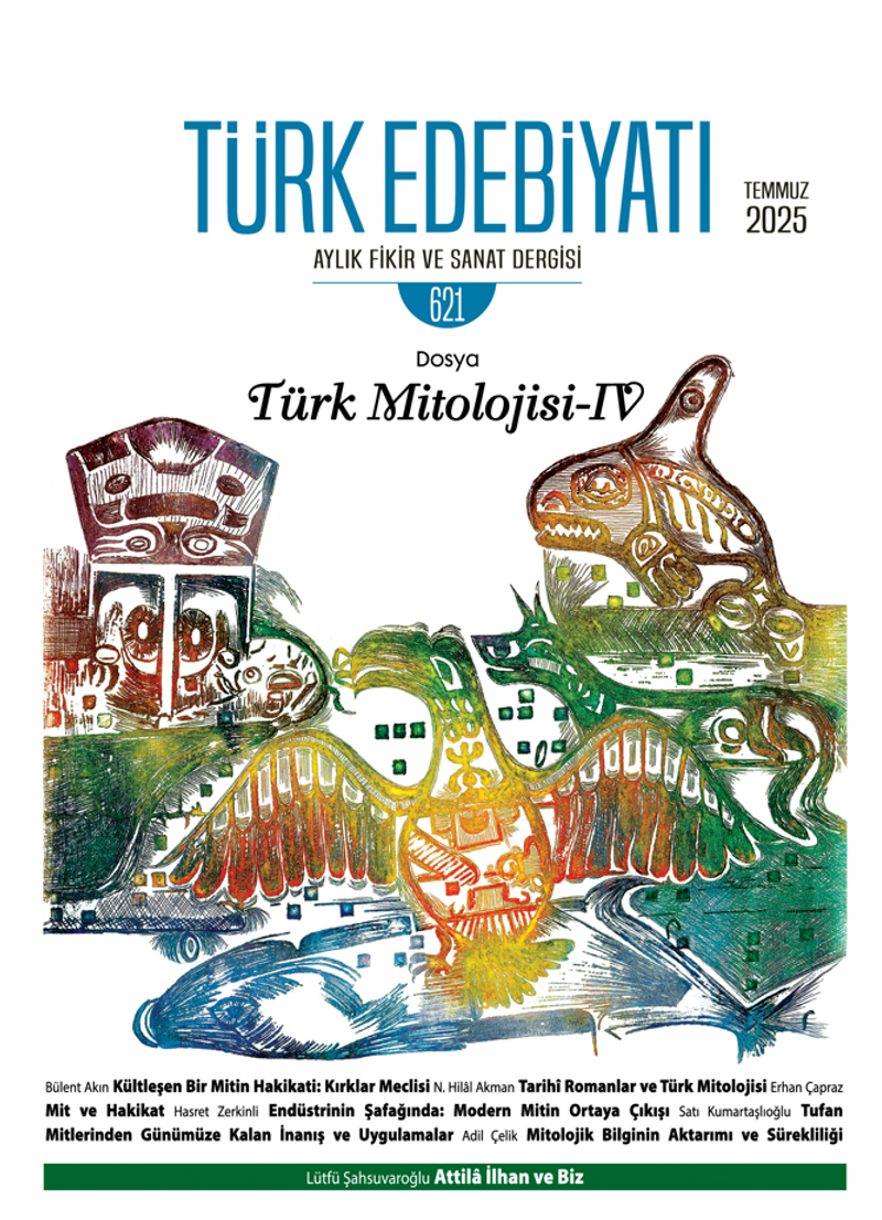 Temmuz sayımızla birlikte dört sayıya yaydığımız “Mitoloji” dosyamızı nihayet tamamlıyoruz. Türk Mitolojisine hasrettiğimiz bu dört sayımızın, önemli bir kaynak olarak kütüphanelerdeki yerini alacağını umuyoruz. Dosyamızın ilk yazısı Erhan Çapraz’a ait. Çapraz, yazısında Doğu ve Batı edebiyatlarında “mit” ve “hakikat” kavramlarını inceleyerek, özellikle Kur’an’daki “esatir” kelimesinin etimolojik ve tarihsel kökenlerine değiniyor. Anlatı geleneklerinin ve “hikâye” kavramının gelişim seyrine ışık tutarak Batı anlatı geleneğinin Doğu’dan etkilendiğine dikkat çekiyor.