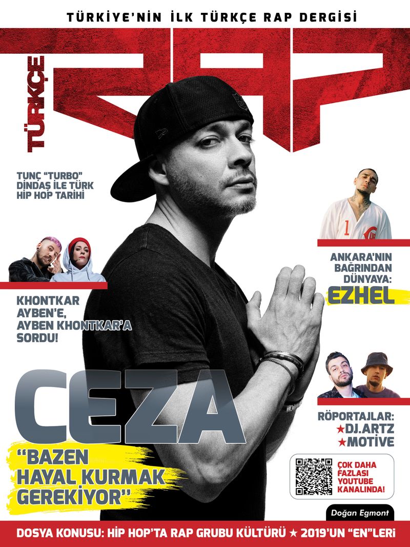 Özel kapak çekimleri ve röportajları ile ses getirecek olan “Türkçe Rap”in ilk sayısında kapak konuğu, Türk rap müziğinin önemli isimlerinden CEZA. Ayrıca Ezhel’in prodüktörlerinden DJ. ARTZ, yeni neslin ses getiren isimlerden MOTİVE, hayran bırakan dövmeleriyle TEPKİ ve birbirlerine sordukları keyifli sorularla AYBEN ve KHONTKAR da derginin ilk sayısının konukları arasında. “Türkçe Rap” dergisi, konser ve albüm kritikleri, en son haberler, listeler, özel dosya konuları ve Türkiye’nin en ünlü ve eski graffiti artistlerinden Tunç “Turbo” Dindaş tarafından hazırlanan “Dünden Bugüne Rap” sayfaları ile dopdolu olacak.