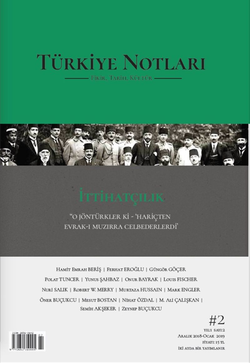 Türkiye Notları’nın 2. sayısı çıktı. Türkiye Notları bu sayıda herkesin bildiği ve kimsenin bilmediği bir mevzuyu, İttihatçılığı merkeze alıyor. Düşünce ve kültür bölümlerinde ise tarih, edebiyat eleştirisi, din sosyolojisi, sinema ve filoloji ile alakalı yazılar yer alıyor.