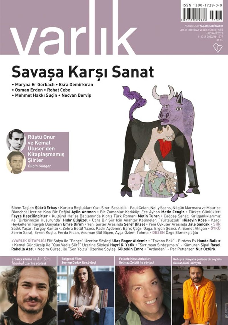 Edebiyattan resme, sinemadan sanat tarihine, gezi izlenimlerinden felsefeye geniş bir alanda yazılar, söyleşiler yayımlayan Varlık bu ay da Çağdaş Sanat, Türkçe Günlükleri, Nasıl Anlatılır?, Belgesel Film, Yeni Şiirler / Öyküler Arasında köşeleri ve son çıkan kitapların tanıtıldığı Varlık Kitaplığı bölümüyle okurlarıyla buluşuyor.