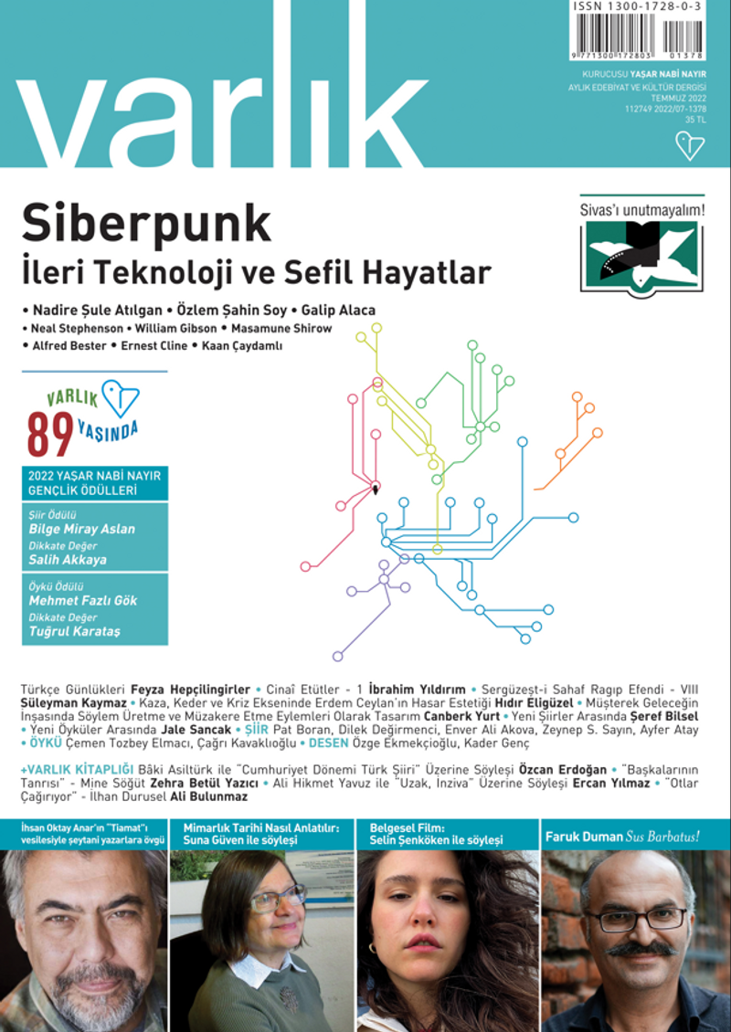 Dosya: “Siberpunk: İleri Teknoloji ve Sefil Hayatlar” – Nadire Şule Atılgan, Özlem Şahin Soy, Galip Alaca, Neal Stephenson, William Gibson, Masamune Shirow, Alfred Bester, Ernest Cline, Kaan Çaydamlı