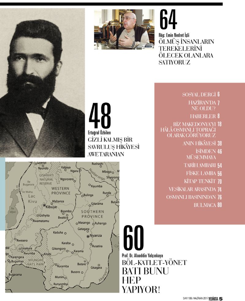 Bu sayımızda; Prof. Dr. Alaaddin Yalçınkaya, Batı’nın Ruanda katliamını; Hicabi Yıldız, eski günlerden bir hatıra “fiske lamba”yı kaleme aldılar. Kitap Tenkit köşemizde ise sahasında ciddi bir boşluğu dolduran, Osmanlı’da ilköğretimin modernleşmesi konulu bir kitap var.