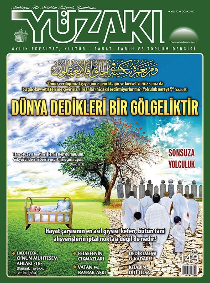 Takvimlerin yıl hânesine bir rakamın daha eklendiği sene başlarında; mânâsız kutlamalar değil, muhasebeler bekler bizi. Gökyüzünden haberdar olmaya çağırır, yeryüzünün geçiciliği. Rûhâniyete yoğunlaştırır, yaşlanan bedenlerimiz...