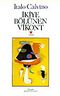 hayatım boyunca okuduğum en etkili kitaplardan biri. romanın baş kahramanı olan vikont türklerle yapılan bir savaşta ikiye bölünür. bir parçası sağlam olarak bulunur ve evine getirilir. fakat vikont inanılmaz derecede zalimleşmiştir. hiçbirşeyi bütün olarak görmeye dayanamamakta, gücünün yettiği herşeyi ikiye bölmektedir. kısa sürede herkesi korku içinde bırakır. ama günün birinde vikontun diğer yarısı da sahneye çıkınca işler karışır. ilginç olan diğer tarafın, tam tersine tamamıyle iyilikle donatılmış olmasıdır. aynı kızı sevince aynı adamın bu iki parçası birbirine düşman olmaya başlarlar.