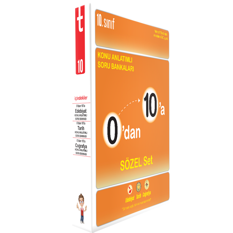Seni uçuracak yepyeni bir setle karşındayız. Bu setle 0’dan 10’a rekor hızla çıkacak, 10. sınıfta sözel derslerde bilmen gereken her şeyi en renkli şekilde öğreneceksin. Üstelik sınavlarda bir soru canavarına dönüşecek kadar soru pratiği de yapacaksın. Bütün bunlar 0’dan 10 Konu Anlatımlı Soru Bankası Sözel setiyle olacak. Peki bu sette hangi kitaplar var?