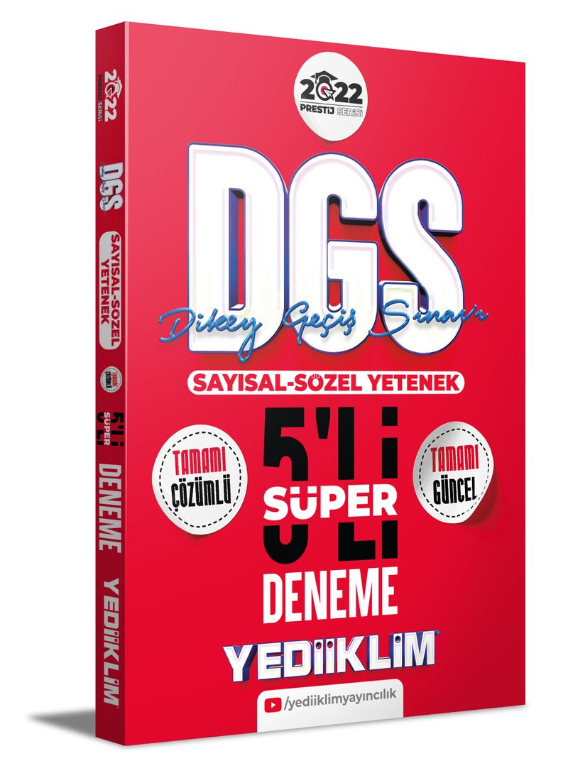 2021 DGS İçeriği incelenerek hazırlanmıştır. Tamamı güncel içerikten oluşmaktadır. 5 adet Tamamı Çözümlü genel denemeden oluşan yayındır.
