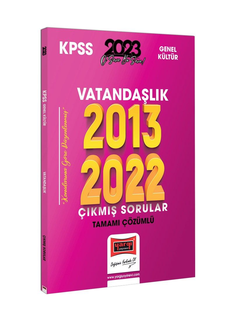 Kamu personeli (memur) statüsünü elde etmek isteyen birçok üniversite mezunu adayın önünde Kamu Personel Seçme Sınavı (KPSS) bir engel olarak görülmektedir. Sınavın Genel Yetenek-Genel Kültür alanı kamu personeli kadrolarına atanabilmek için belirleyici olmakta ve baraj niteliğini taşımaktadır. Bu nedenle sınava hazırlanan adayların Genel Yetenek-Genel Kültür alanında önceki yıllarda çıkmış sınav sorularının yapısal özelliklerini, türlerini, çözümleme tekniklerini bilmeleri ve buna uygun olacak biçimde bilgi düzeylerini geliştirmeleri gerekmektedir.Bu süreçte sınava hazırlanan adaylara yardımcı olmak amacıyla, KPSS Genel Kültür VATANDAŞLIK alanında 2013, 2014, 2015, 2016, 2017 2018, 2019, 2020, 2021 ve 2022 yıllarının çıkmış soruları ve analizli çözümleri ile sizlere sunulmuştur. Sorular konularına göre gruplandırılırken en güncel soru örneklerini görmeniz için yakından uzağa ilkesi benimsenmiştir.