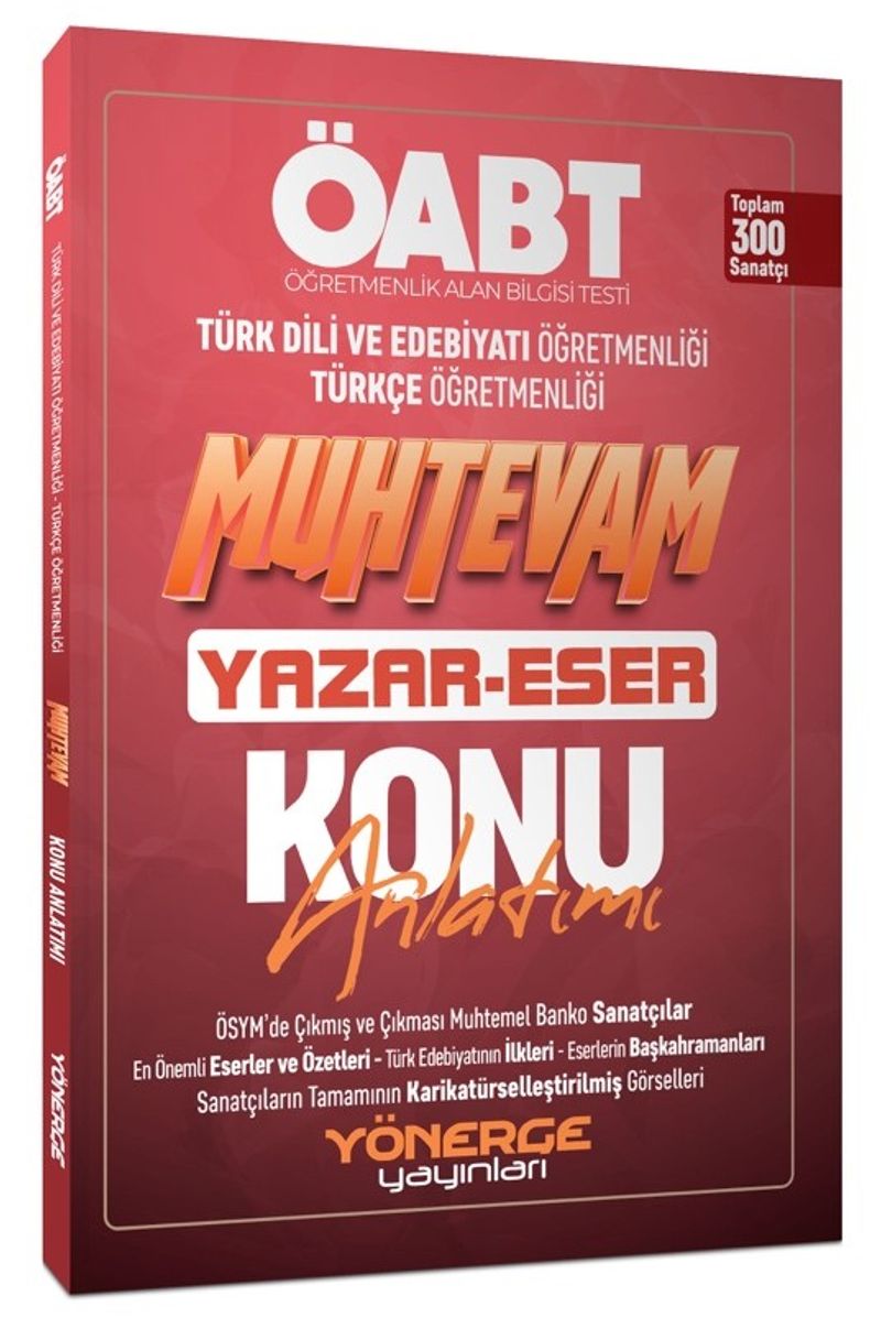 - Günümüze kadar ÖSYM'nin sorduğu banko ve sorması muhtemel 300 sanatçının en önemli özeliklerini hızlı bir şekilde öğrenilebilmesi adına uzun, kapsamlı ve akılda kalıcı şekilde yazdık. AYT Yazar Eser kitabımızdan tamamen farklıdır, hiçbir sanatçı AYT'deki kısa ve öz anlatımla aynı değildir.