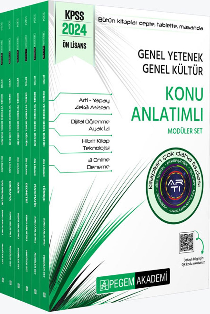 Kamu Personel Seçme Sınavı (KPSS), öğrenim hayatınız boyunca verdiğiniz emeğin sonucunu alarak meslek hayatınıza adım atmanızı sağlayacak önemli bir aşamadır. Bu süreçteki emek ve çabanız, programlı bir çalışma ile sizi hedefinize doğru yöneltecek ve öne geçirecektir. Böylesi bir süreçte programlı bir çalışmaya kaynaklık edecek olan, deneyimli bir yazar ekibi tarafından özenle oluşturulmuş Konu Anlatımlı Setimizi sizlere sunuyoruz. Kitabımızın baskı tarihinden sonra gerçekleşen herhangi bir değişiklik ya da sizlerden gelen geri bildirimler sonucunda yapılan bir düzenleme aşağıda verilen koda yüklenecek böylece kitabımız “Dinamik” bir şekilde tüm yıl boyunca yanınızda olacaktır. Ayrıca Arti-Yapay Zekâ teknolojisi ile bütün kitaplarımıza artık cebinizden ve tabletinizden ulaşarak teknolojinin avantajlarından çalışmalarınızda da faydalanabileceksiniz.