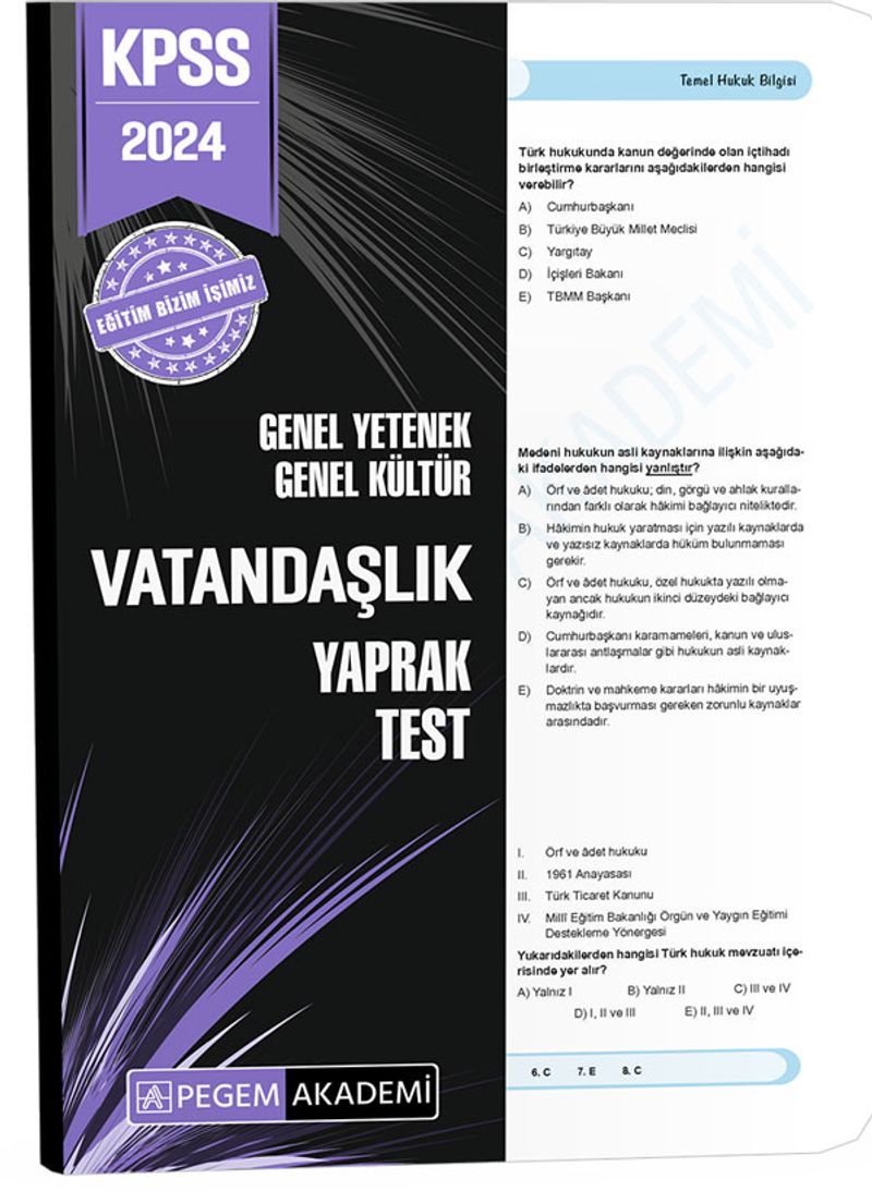 2024 KPSS Genel Yetenek Genel Kültür Vatandaşlık Yaprak Test