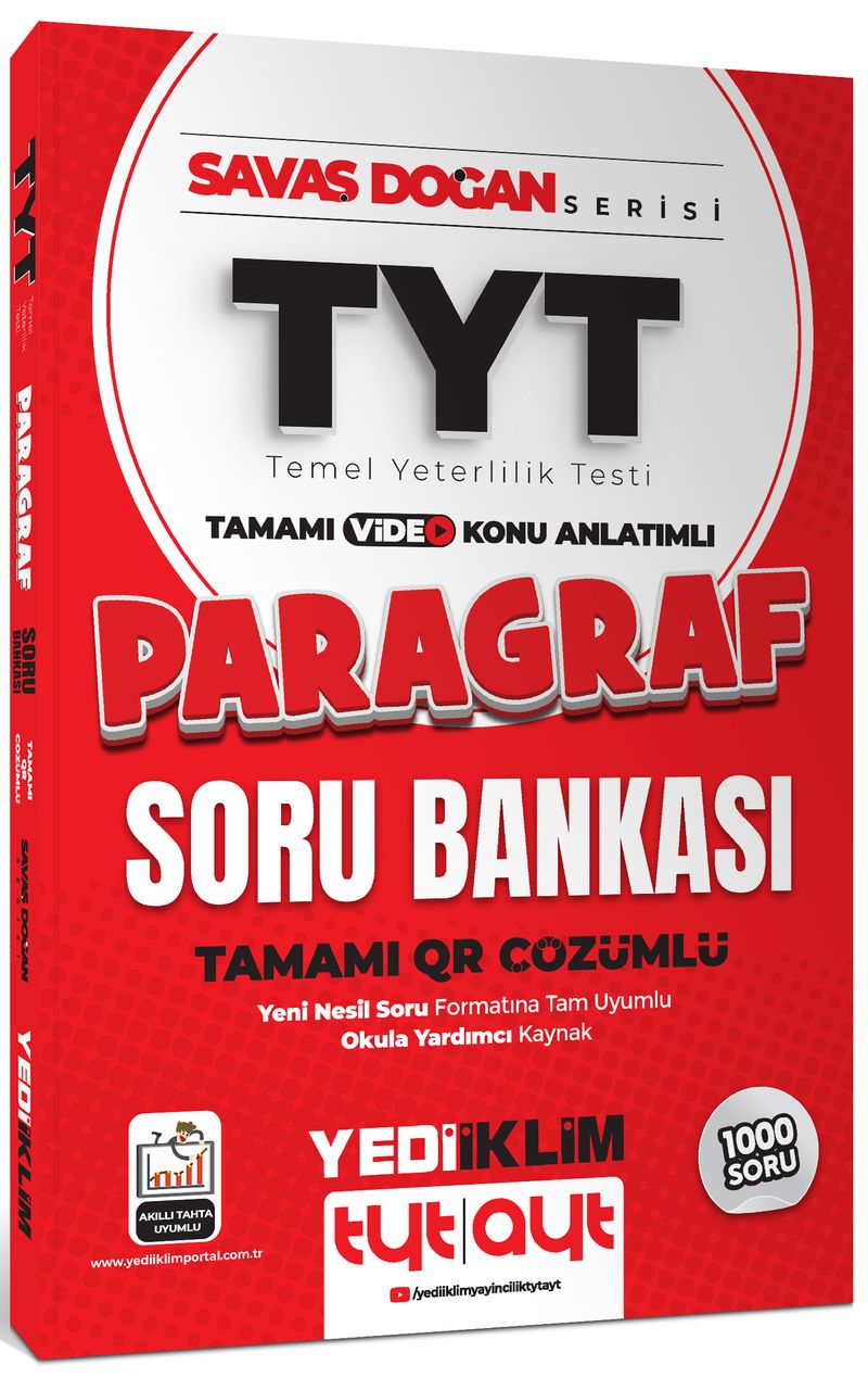 2025 TYT Savaş Doğan Serisi Tamamı Video Konu Anlatımlı ve QR Çözümlü Paragraf Soru Bankası