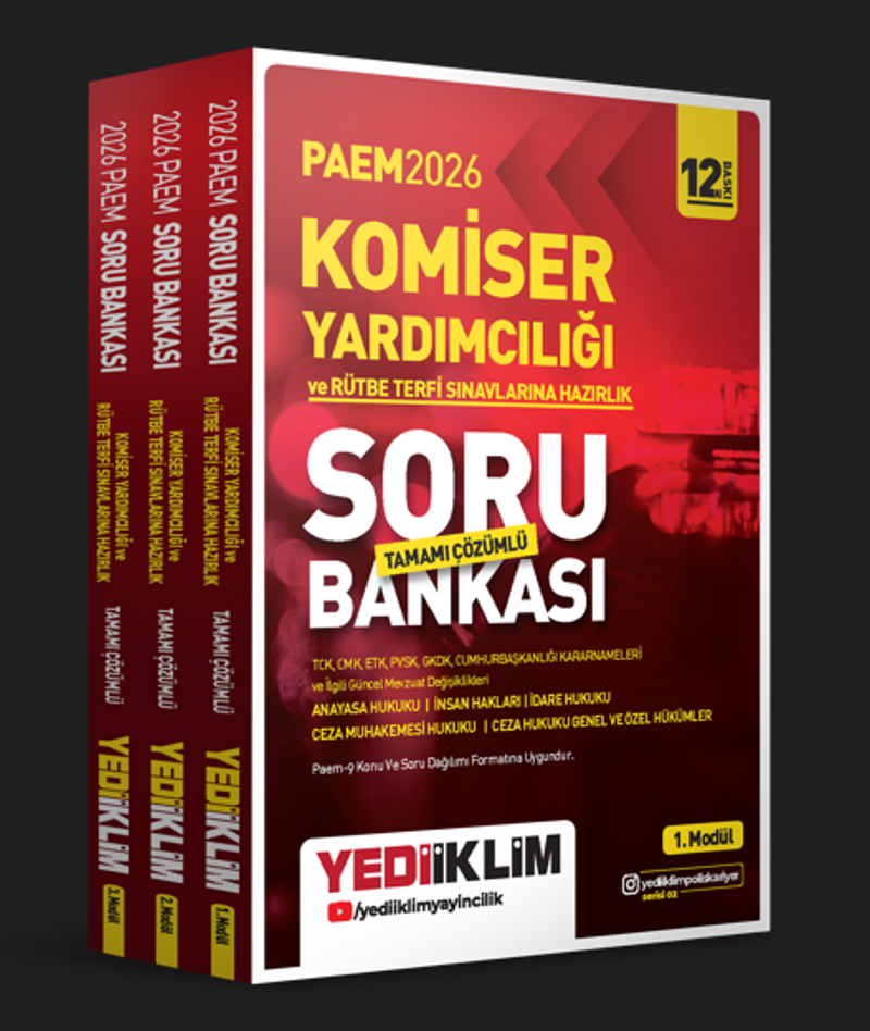 2026 PAEM Komiser Yardımcılığı ve Rütbe Terfi Sınavlarına Hazırlık Modüler Set Tamamı Çözümlü Soru Bankası 3 Modül