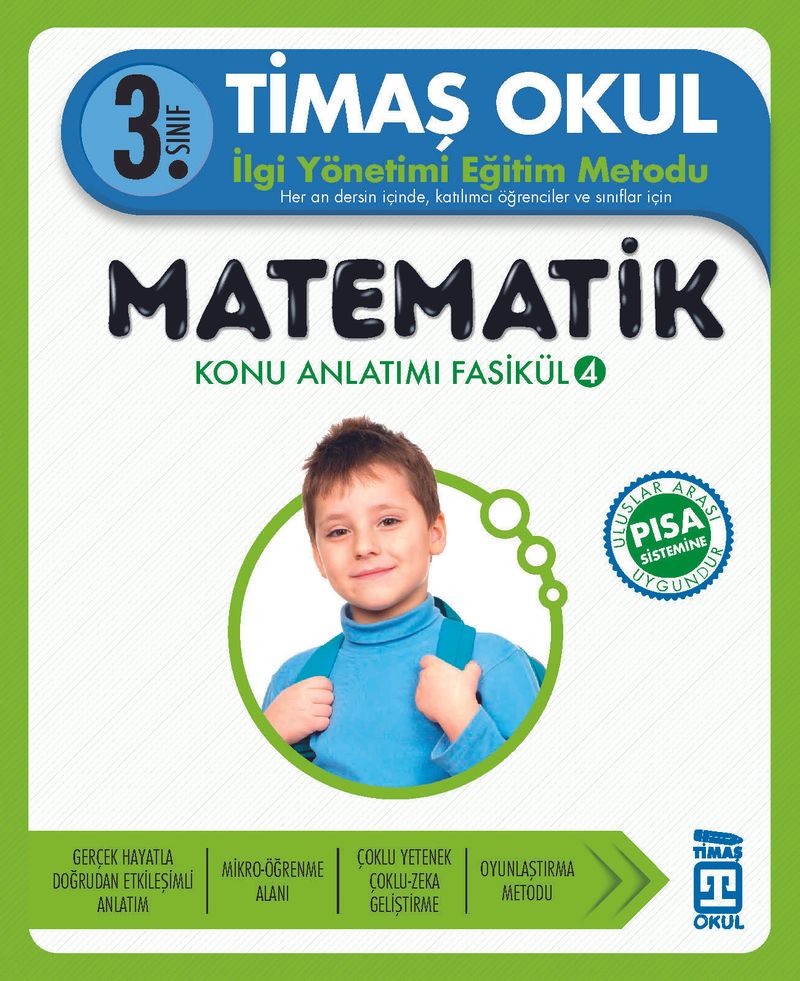 İlgi Yönetimi Eğitim Metoduyla hazırladığımız Matematik kitaplarımız öğrencinin kolay taşıması ve öğretmenin istifadesi için 4 fasikül olarak hazırlanmıştır. Matematik başarısı, günlük hayatla kurulan bağlantı ile doğru orantılıdır. İlgi Yönetimi Eğitim Metodu ile Matematik dersi, öğrencinin günlük hayatının doğal bir parçası haline getirilmesi hedeflenmiştir. Bulmaca çözme, eşleştirme, sonuca varma, soru yazma, analiz etme ve sentezleme, problem çözme, öğrendiklerini kullanma gibi öğretici ve dikkat artırıcı etkinliklerle zenginleştirilmiştir. Öğrenciyi sürekli dersin için ve aktif tutacak şekilde dolu dolu ve keyifli bir ders sürcei sunulmaktadır. Derslerin ve eğitim öğretim faaliyetlerinin destekleyici somutlaştırılış örneklerle hayatın keyifli bir parçası haline getirilmesi hedeflenmiştir.