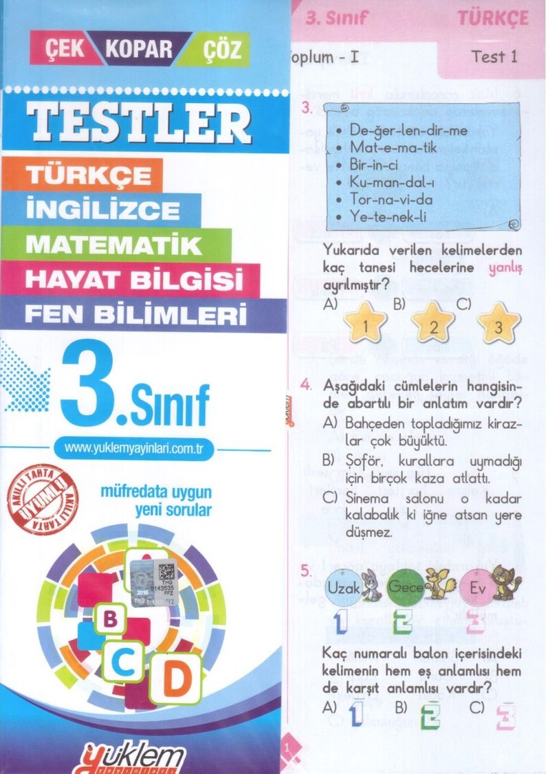 3. Sınıf Test Çek-Kopar-Çöz