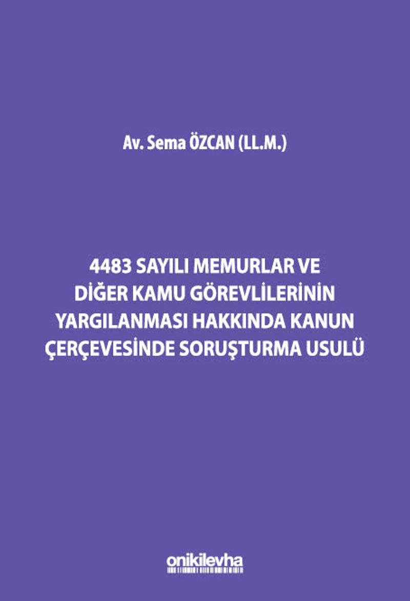 Memur ve diğer kamu görevlileri, 4483 s. Kanun kapsamında özel soruşturmaya tabidir. Bu alanda özel soruşturma usulünün hatalı hukuki değerlendirmelerle yürütülmesi neticesinde verilen mahkeme kararları ciddi hak kayıpları yaşanmasına ve zaman kaybına neden olabilmektedir. Eserde, 4483 sayılı Memurlar ve Diğer Kamu Görevlilerinin Yargılanması Hakkında Kanun çerçevesinde memur ve diğer kamu görevlilerinin soruşturulması usulü yeni bilgiler ve gelişmelerle birlikte ele alınmıştır.