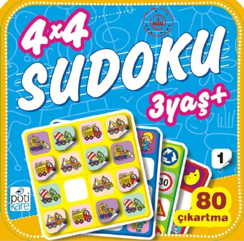 3 yaş üzeri çocuklar için hazırlanan 4x4 bulmacalar, belli bir temadaki 4 resmin 16 kareye, yerleştirilmesini amaçlar. Kitap, 10 farklı Sudoku bulmacasından oluşmakta ve eksiklerin tamamlanacağı çıkartmalar kitabın ortasındaki 2 sayfada bulunmaktadır.
