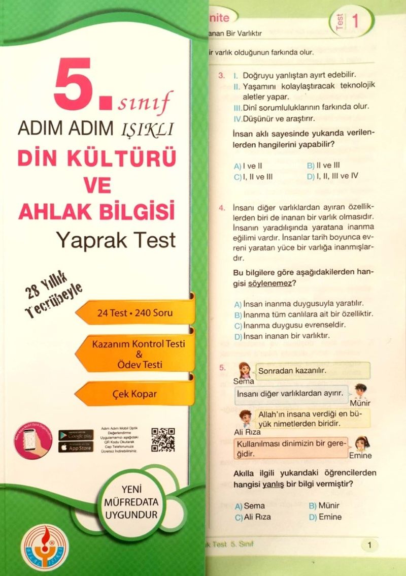 5. Sınıf Adım Adım Işıklı Din Kültürü ve Ahlak Bilgisi Yaprak Test
