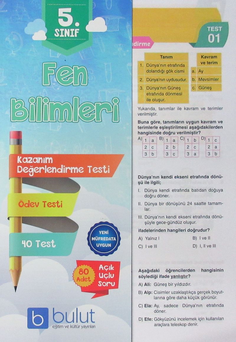 5. Sınıf Fen Bilimleri Kazanım Değerlendirme ve Ödev Testleri