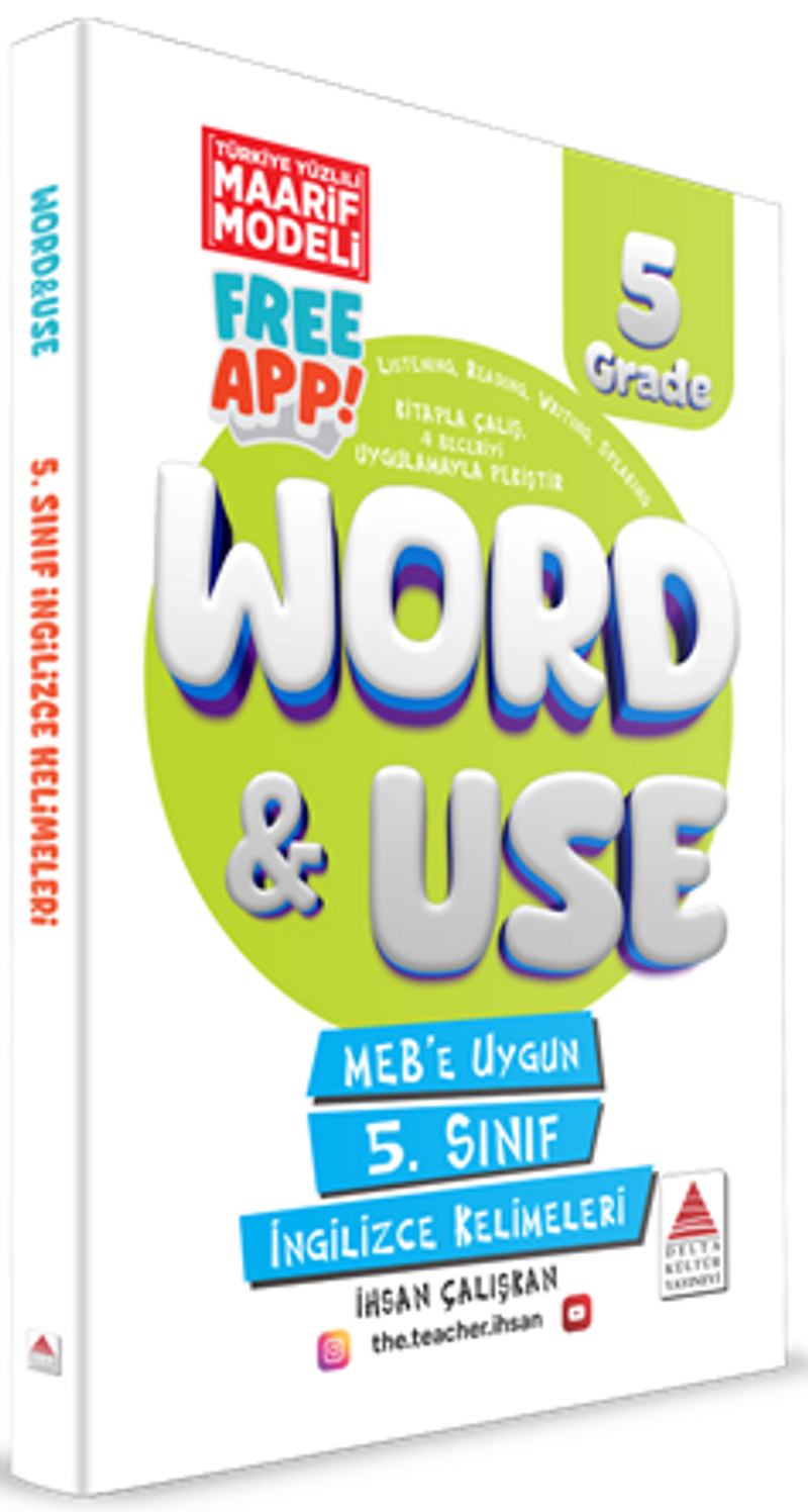 Kitap ve uygulama, derslerdeki öğrenmeyi desteklemek için hazırlanmıştır. Uygulamayı her gün sadece 5 dakika kullanarak, dinleme, okuma, yazma ve konuşma becerisini geliştirecek kelimeleri eğlenceli biçimde tekrar edebilir ve öğrenmeyi kalıcı hâle getirebilirsin.