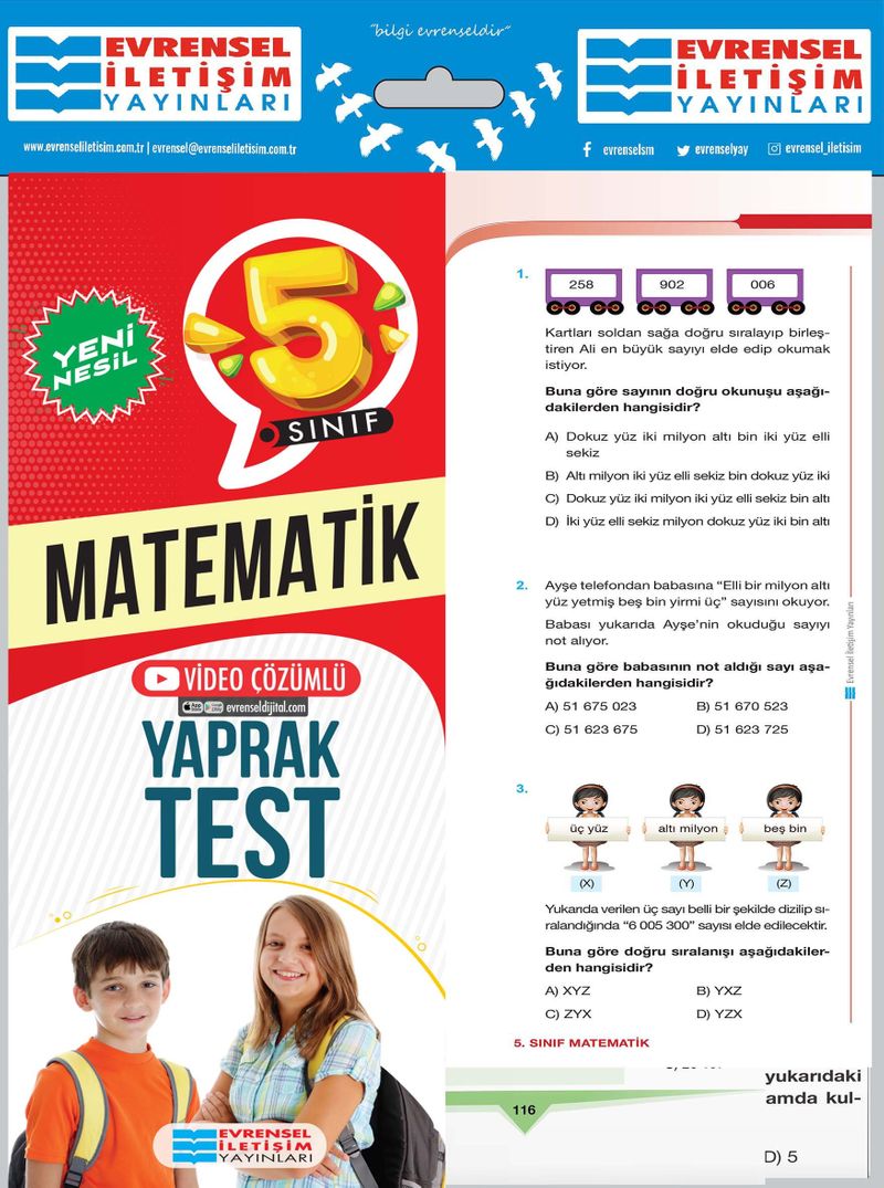 MEB’in 5. Sınıf kazanımlarının tümüne yönelik yeni nesil sorularla hazırlanmıştır.
