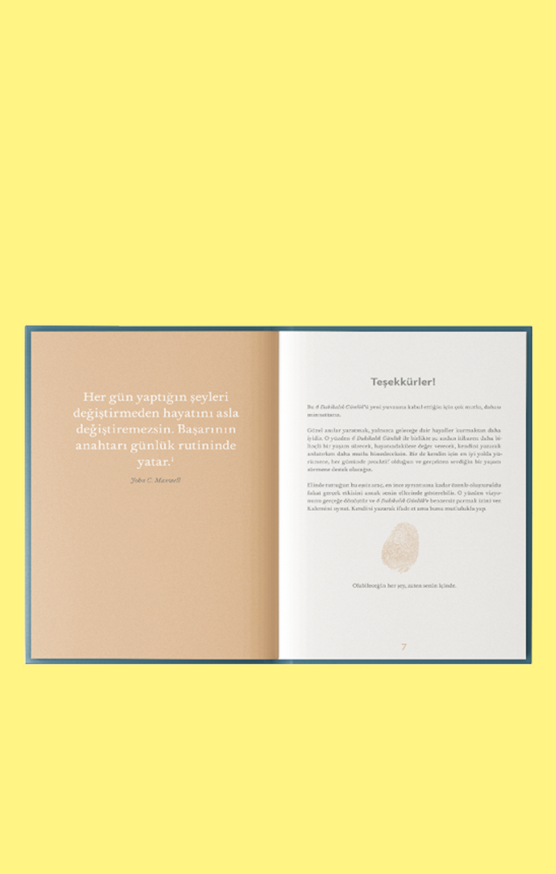 İLERLEMEYE VE HAYATTAKİ İYİYE ODAKLAN: İyi hissetmek istiyorsan iyi düşünmen gerek ve bunu da bu günlük sayesinde başaracaksın. 6 Dakikalık Günlük sahip olmadıklarına ya da kötü şeylere değil, ilerlemeye ve iyi olana odaklanmana yardımcı olacak. Bu sayede minnettarlık, farkındalık ve huzur seviyen artacak.
